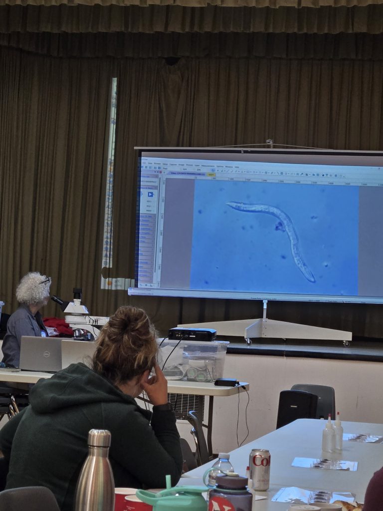 The highlight for many not only was our deep dive into the soil microbiome but also hands on evaluation of their own soil stability. I shared microscope images of bacteria, fungal hyphae, nematodes and even nematode-infecting fungi (trapping fungi nematode as well as nematophagous fungi)—offering a rare look into the microscopic life that drives soil health.